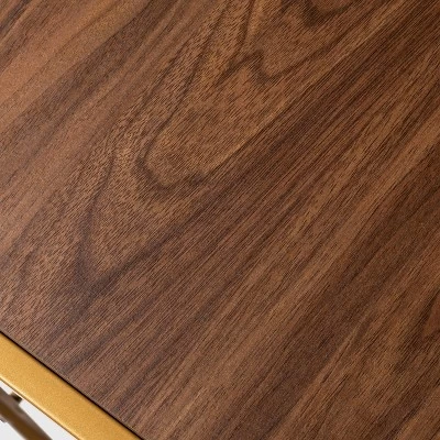 - Brass-finish metal shoe rack with walnut wood top makes a sleek addition to your home
